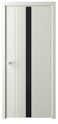 Дверь Геометрия-8 ширина 80 см Слоновая кость Эмаль Стекло черное кромка В цвет полотна в Уфе