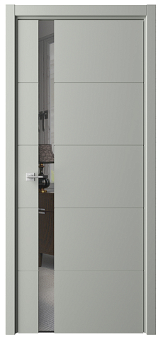 Дверь Геометрия-7 ширина 90 см Серый Эмаль Зеркало грей с замком кромка В цвет полотна в Уфе